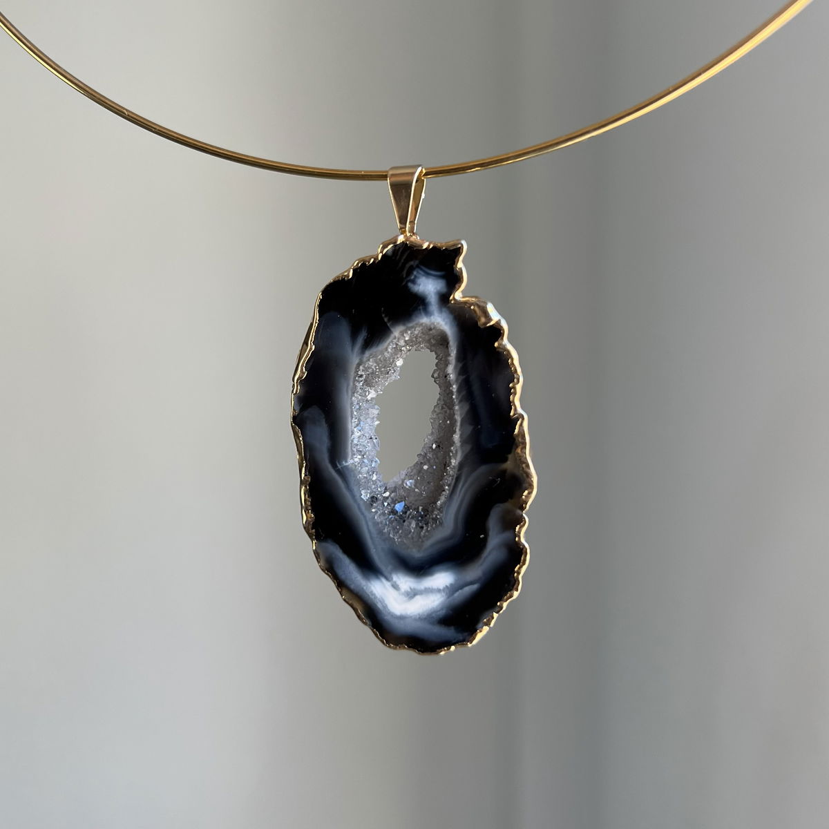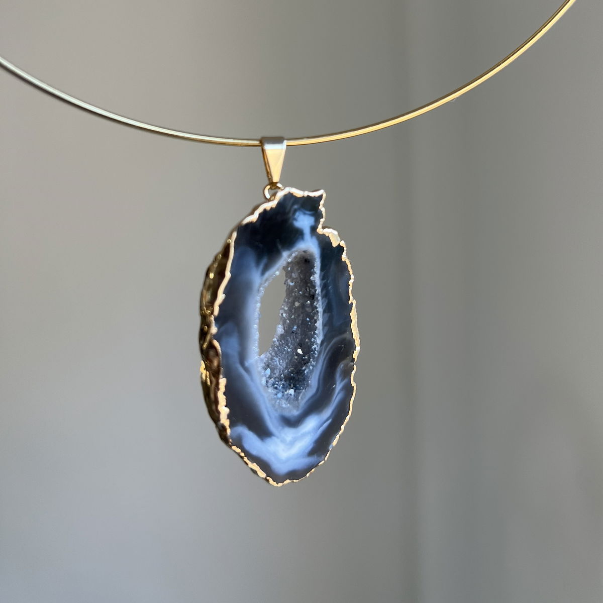 Geoda natural con baño dorado